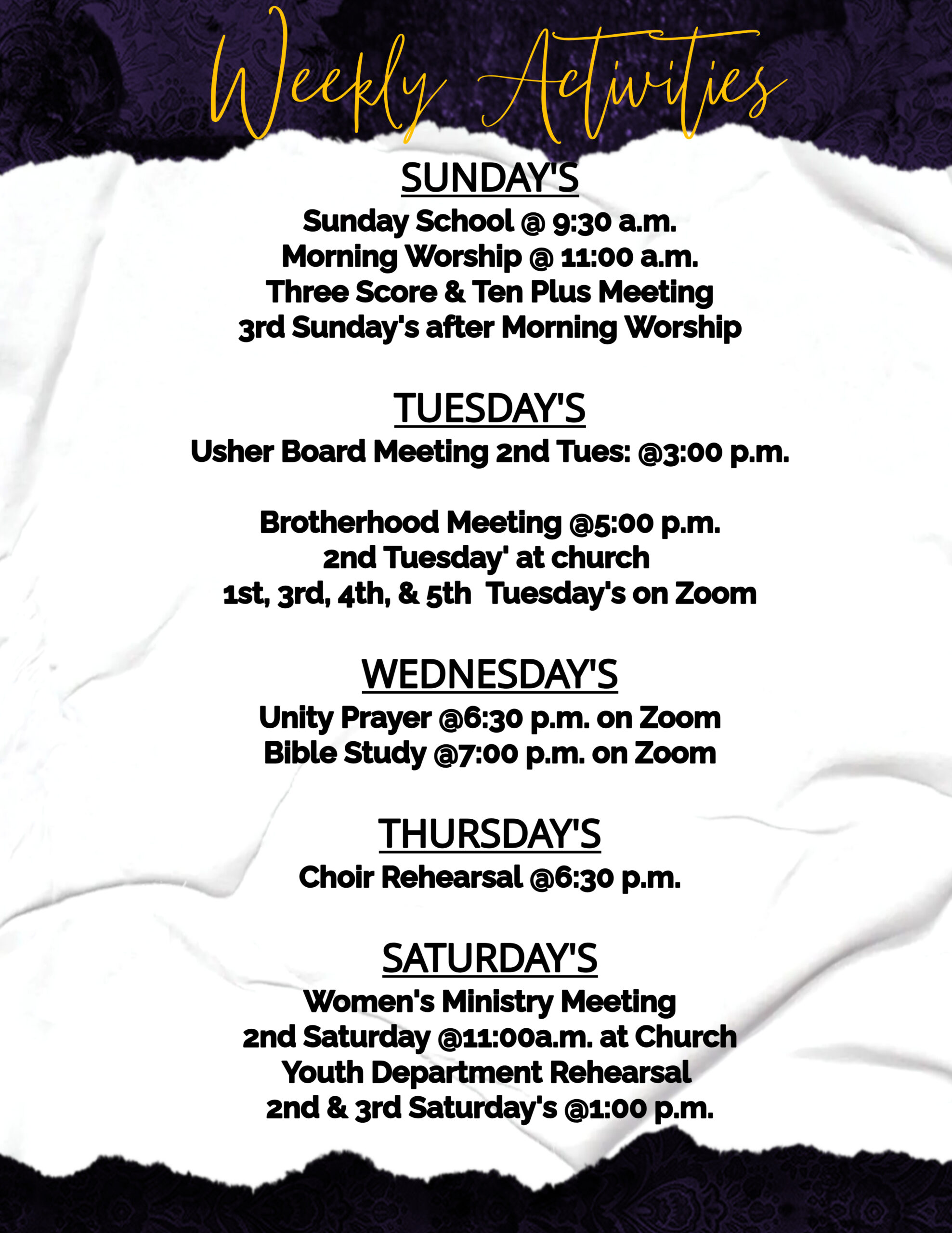 Greater El Bethel Missionary Baptist Church 813 Williams Drive Richmond, CA 94806 (510) 233-2391 Rev. Harold W. Orr Jr. MD~Pastor Emeritus DonateLive Stream ; facebook Zoom Click Here facebook Stay In Touch Success! Name Email Subscribe